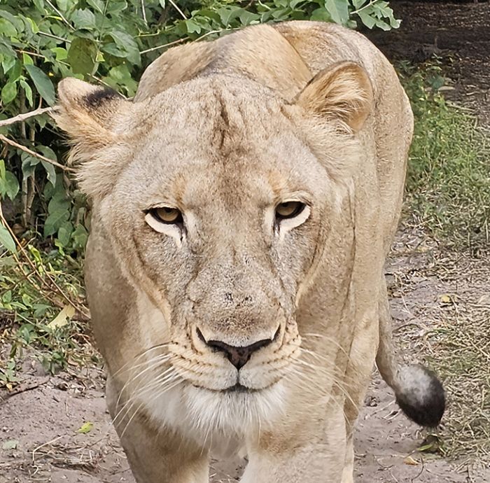 Наслаждаясь своим пышным зеленым вольером, Сахара выросла в сильную и уверенную в себе львицу.